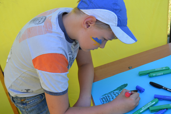 Урочисту програму було розгорнуто на відкритому повітрі, на майдані перед сільською радою. Допоки дорослі спілкувалися, з малечею займалися волонтери-аніматори. Вони наносили нешкідливою фарбою дітям на обличчя невеличкі жовто-блакитні прапорці, надавали їм необмежені можливості для художньої творчості, зокрема діти малювали та виготовляли послання для солдат в зону АТО.