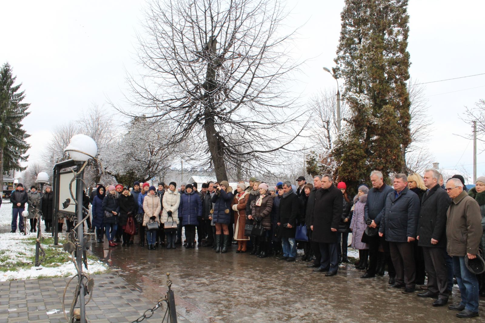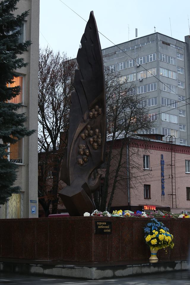 Керівники районів та міст , представники органів виконавчої влади, місцевого самоврядування, працівники підприємств, установ, організацій, представники громадськості, молодь міста та помічники народного депутата Сергія Лабазюка хвилиною мовчання вшанували пам’ять загиблих та поклали квіти до пам’ятного знаку «Небесної сотні».
