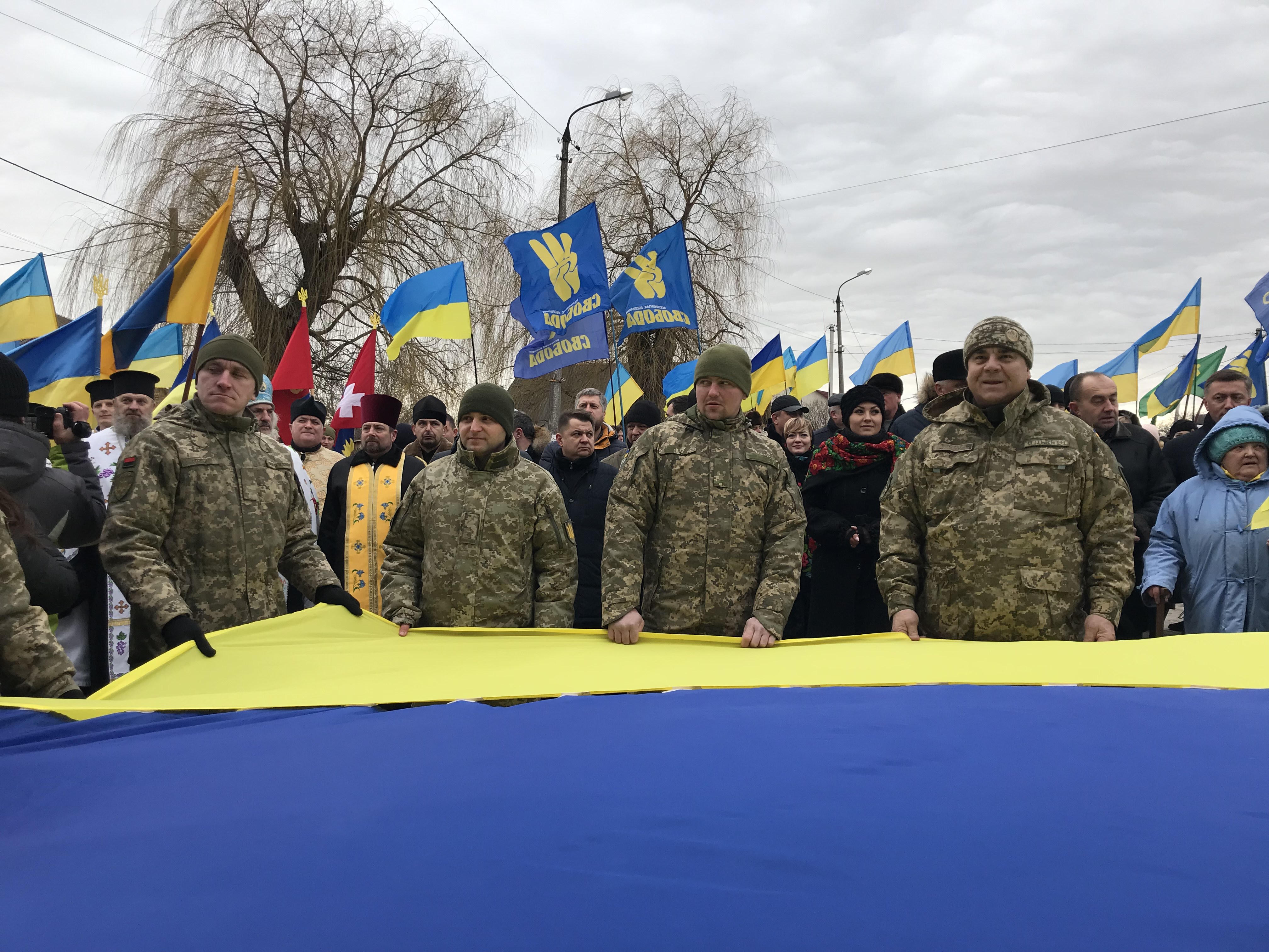 Цього року почесне право стати прапороносцями надали військовим обох областей, бо ж саме вони сьогодні борються за нашу землю, і саме завдяки їх мужності та патріотизму ми маємо можливість відзначати День Соборності.