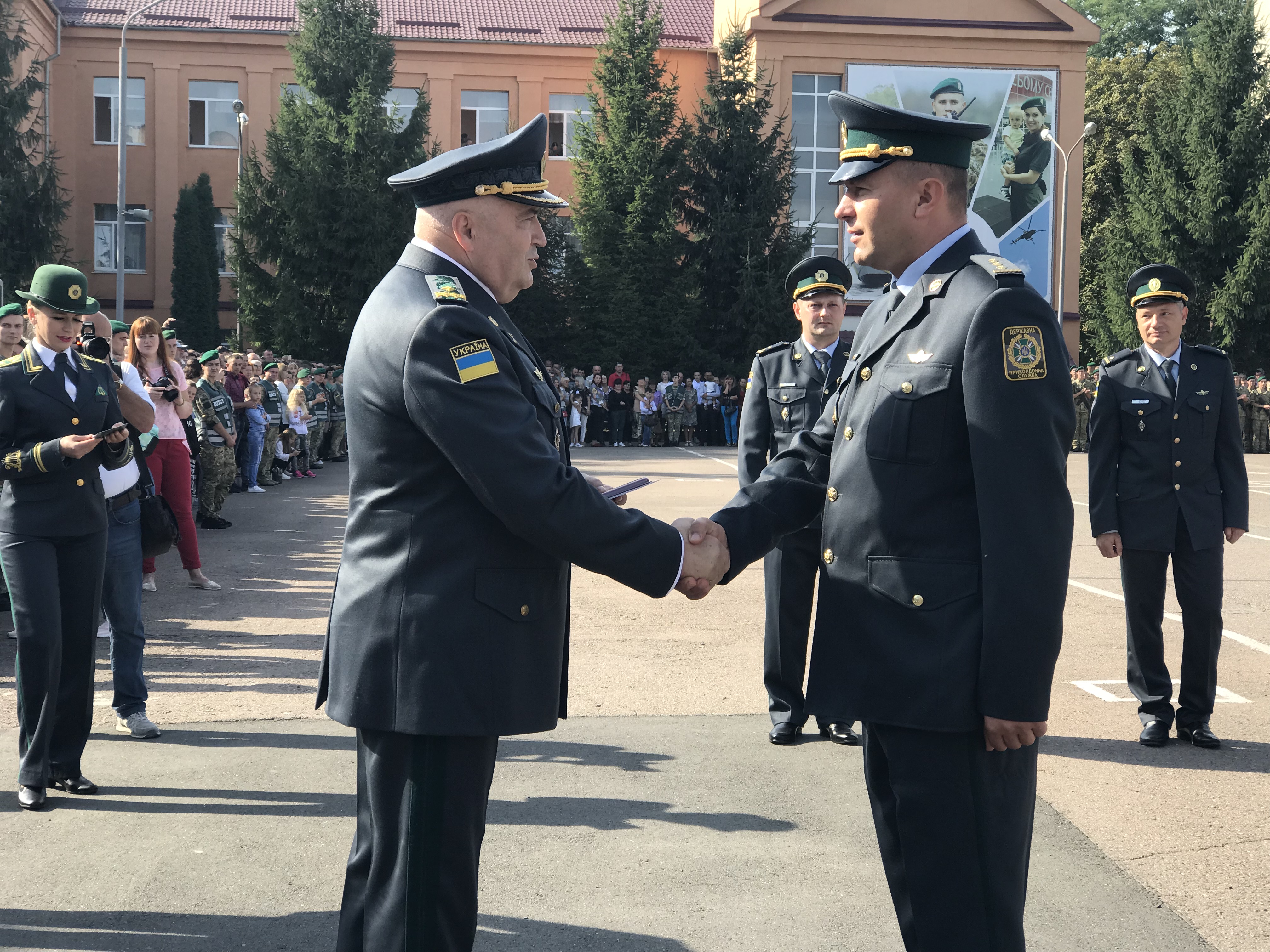 Ректор академії Олег Шинкарук та виконуючий обов’язки Директора департаменту персоналу Адміністрації Державної прикордонної служби України генерал-майор Сергій Сердюк також привітали курсантів з такою подією.