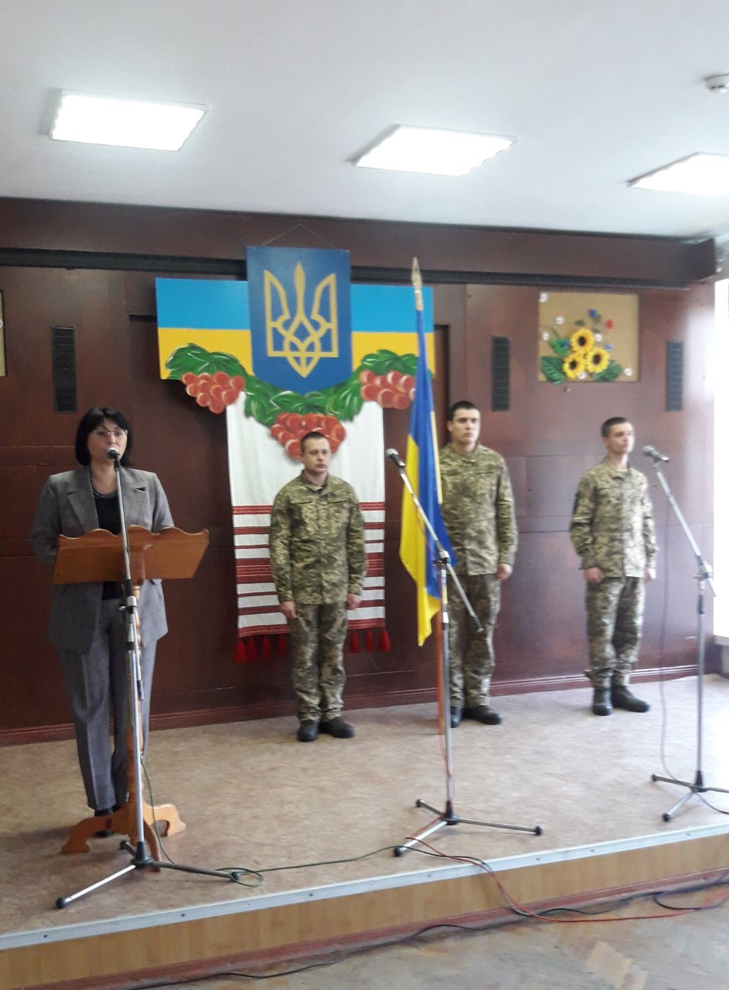 Серед присутніх у залі – учасники Антитерористичної операції на Сході, працівники військового комісаріату та особовий склад військової частини, яка дислокується у Волочиську. Останні, до слова, цьогоріч відзначили першу річницю з дня створення.