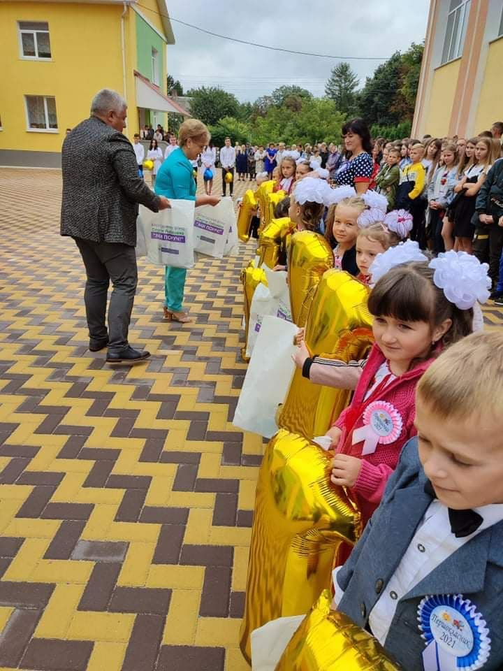А поки школярі насолоджувалися зустріччю з друзями та святковою атмосферою, традиційно до урочистостей в школах 188-го округу Хмельниччини долучилися помічники народного депутата України, представника партії «ЗА МАЙБУТНЄ» Сергія Лабазюка. Вже 9 років поспіль благодійний фонд «МИ ПОРУЧ» не змінює традицію та вручає школярам подарунки – канцилярське приладдя (зошити, кольорові олівці, альбоми та ручки) та спортивний інвентар.