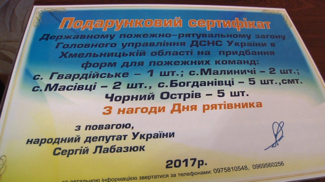 Окрім слів вітань, від народного депутата на Хмельницький район було подаровано 15 форм спеціального одягу.