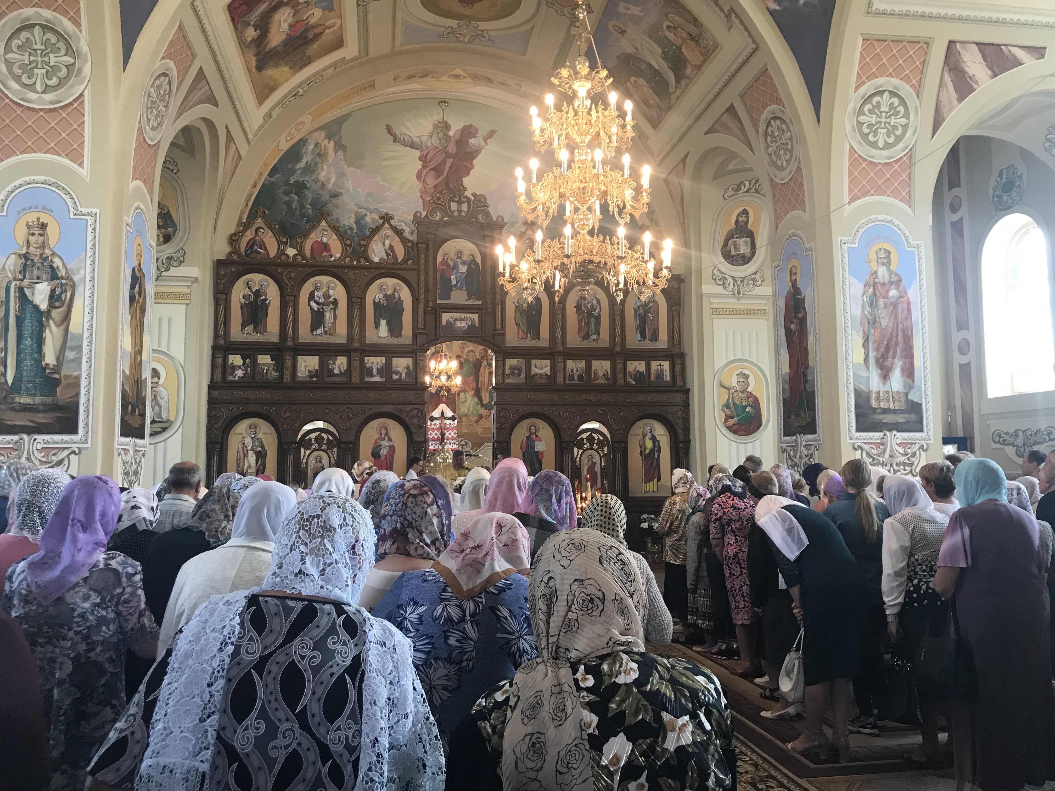 Віряни не приховували захвату від зображень святих, а малеча зацікавлено розглядала кожну деталь на стіні. До слова, на освячення храму зібралися люди не лише з Волочиська, а й навіть з сусідніх населених пунктів. До слова, на богослужіння приїхали і настоятелі храмів Волочиського району.