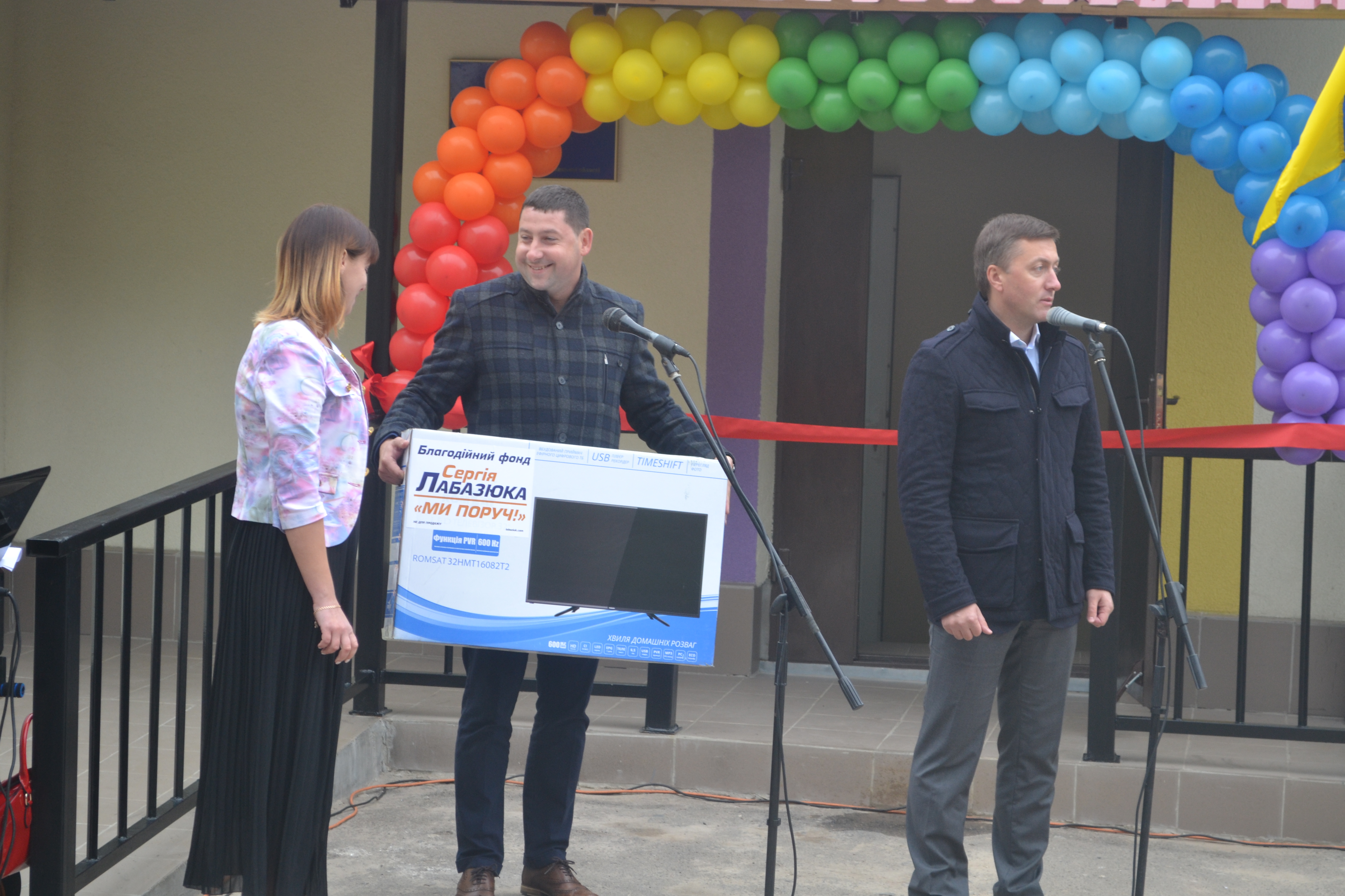 Напередодні відкриття садочку, благодійний фонд Сергія Лабазюка «Ми поруч» встановив на території ДНЗ розширений дитячий майданчик, а вже під час урочистостей нардеп вручив телевізор.